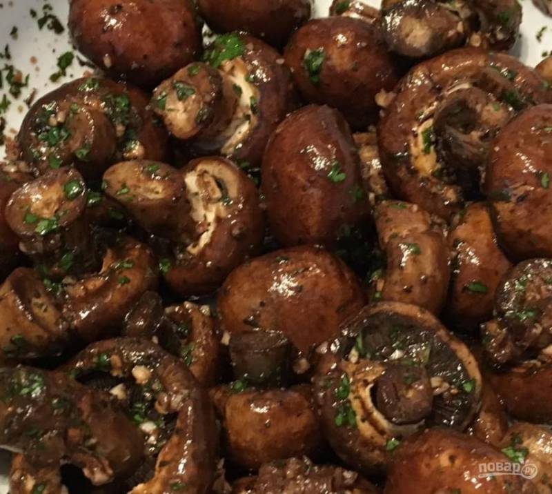 В маринад отправьте грибы, перемешайте, накройте крышкой или целлофаном и отправьте мариноваться в холодильник на 30 минут.