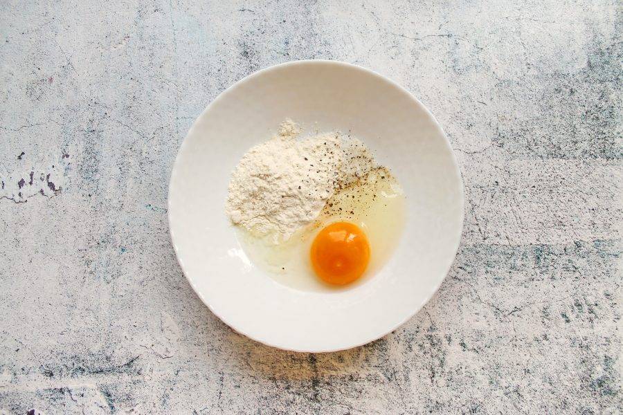 В миске смешайте яйцо, соль и муку в однородное тесто.