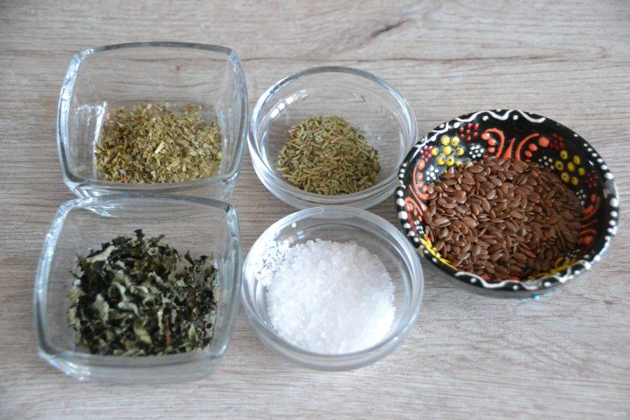 - Розмарин, базилик, орегано, семена льна, крупная морская соль, сыр 2 ст. ложки ингредиенты необязательные, использовать по желанию