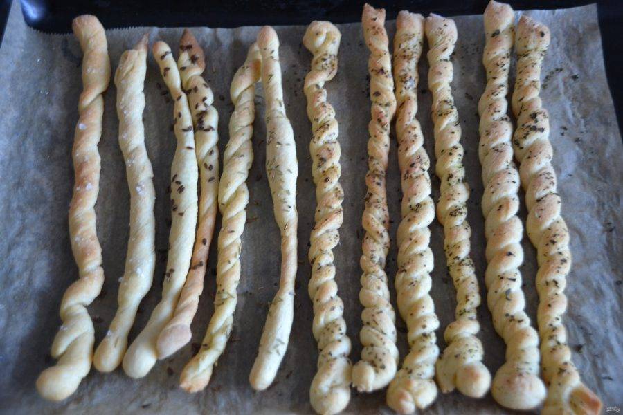 Выпекайте "гриссини" при температуре 200 градусов около 20 минут.