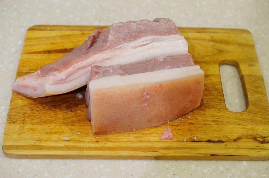 3. Грудинку помойте, обсушите, посолите, поперчите.