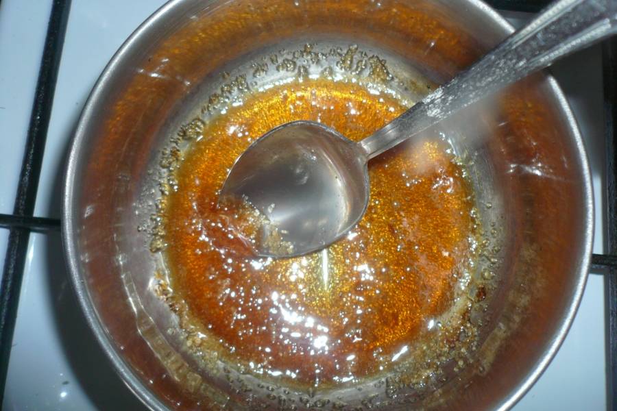 Все хорошенько перемешиваем до однородности. Варить нужно до тех пор, пока смесь не приобретет карамельный цвет, а консистенция не станет вязкой. При варке не забудьте постоянно помешивать.