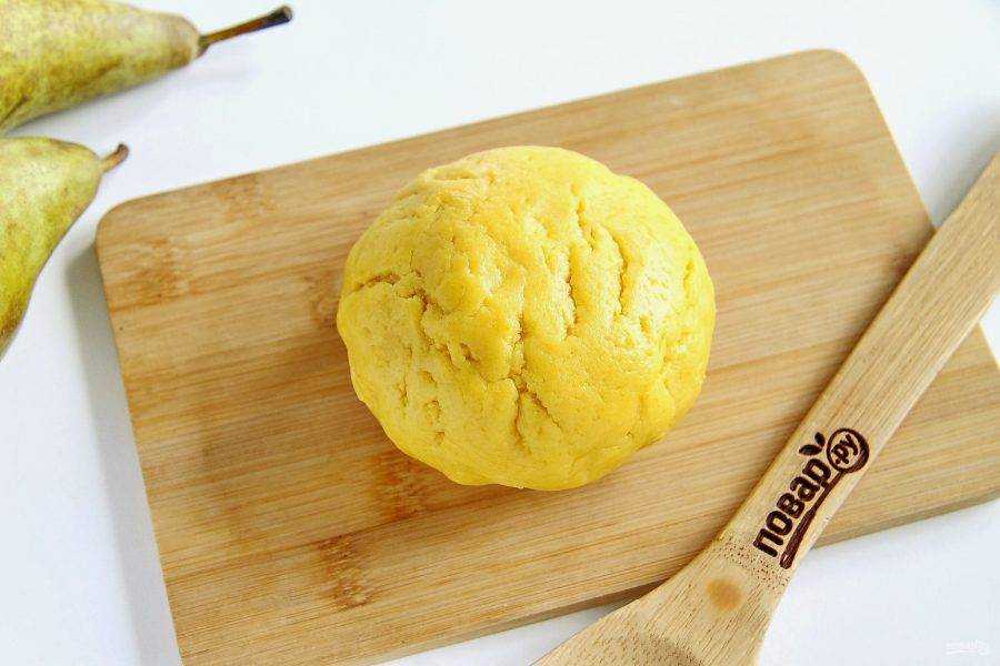 Замесите мягкое тесто. Соберите его в шар, заверните в пищевую пленку и уберите в холодильник.