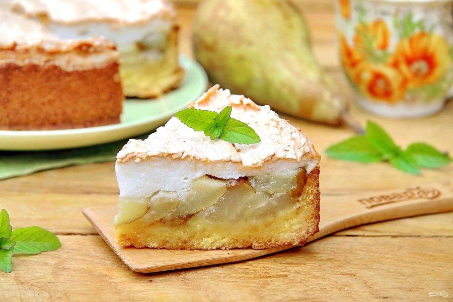 Я попыталась совместить в этом пироге нежное песочное тесто, сочные сладкие груши и воздушное как облако безе. Получилась просто необыкновенно вкусная выпечка! Берите рецепт на заметку!