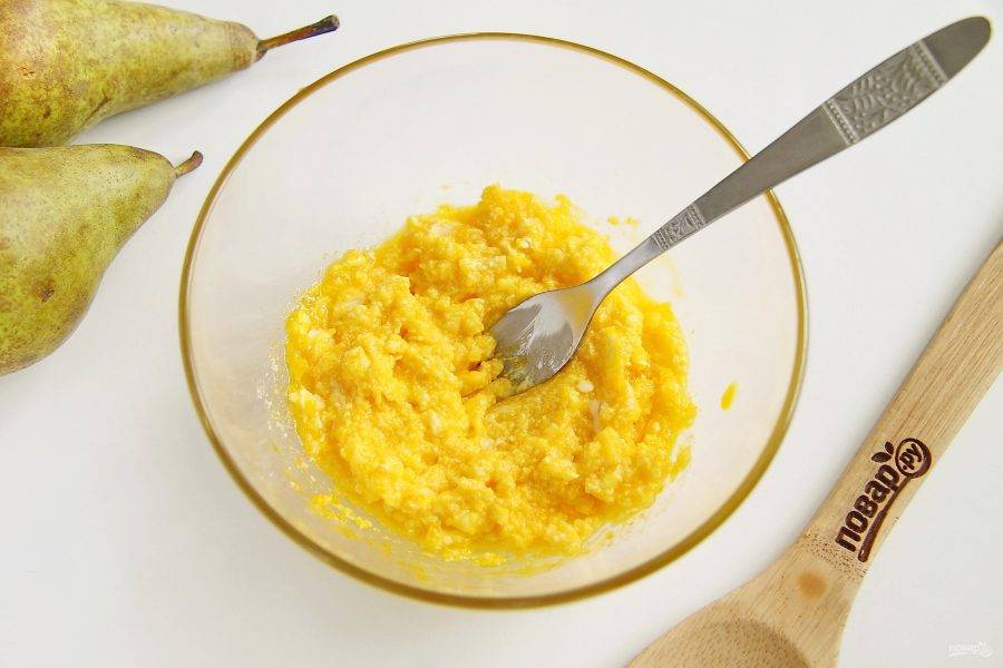 Перетрите все вилкой до однородного состояния или взбейте миксером.