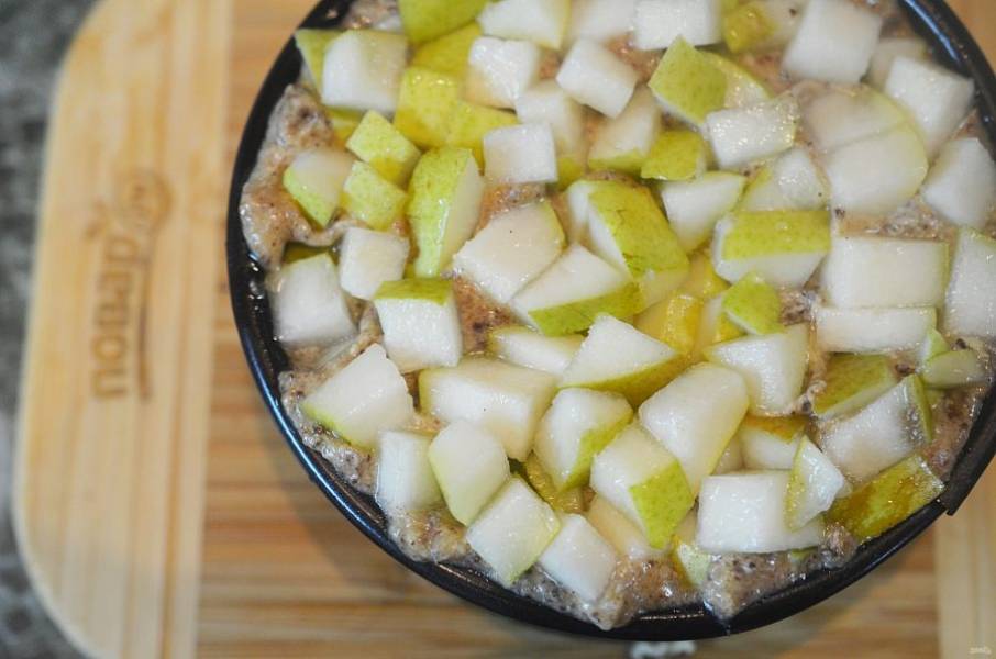 Груши нарежьте кубиком.