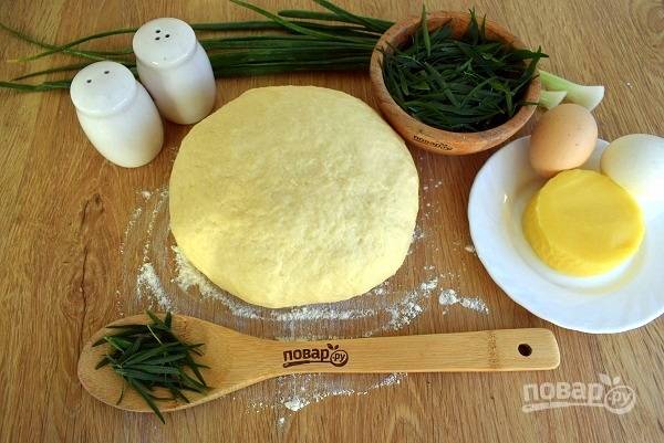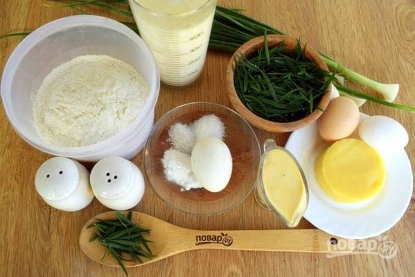 Подготовьте необходимые продукты. Тархун и лук промойте прохладной водой. Для начинки два яйца отварите вкрутую.