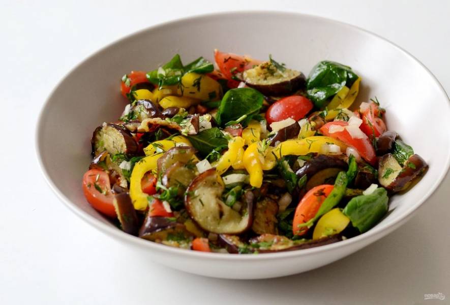 Рецепт грузинского салата с жареными баклажанами. Это яркий овощной салат, в который добавляется много зелени и пряностей. Вкус получается фантастический!