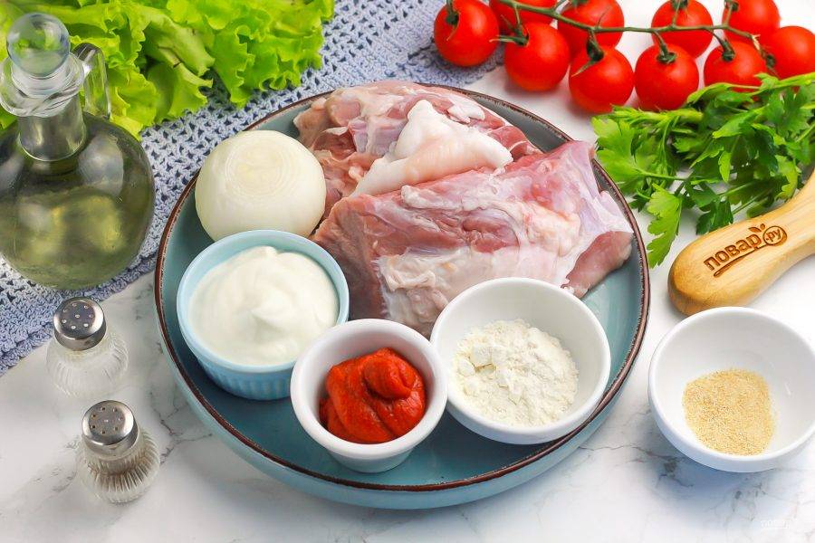 Приготовьте указанные продукты. Приобретите свинину с небольшой сальной прослойкой.