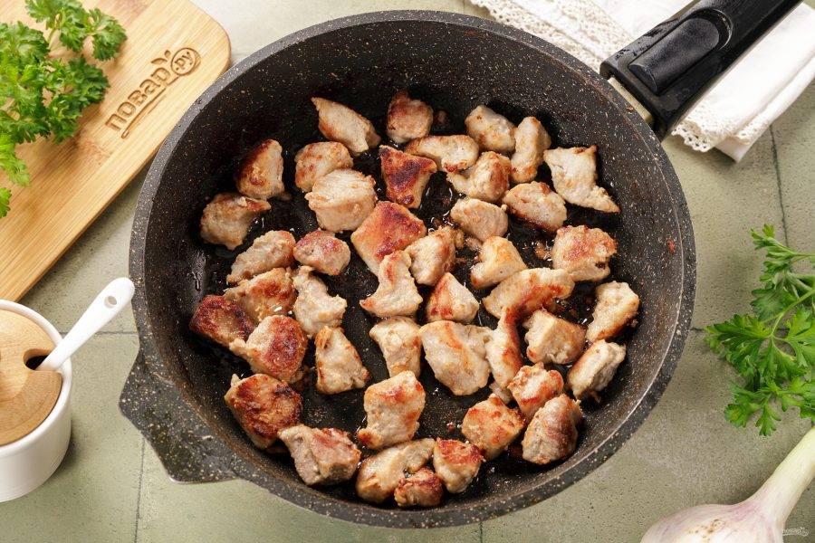 Обжарьте на сильном огне до появления лёгкой румяной корочки.