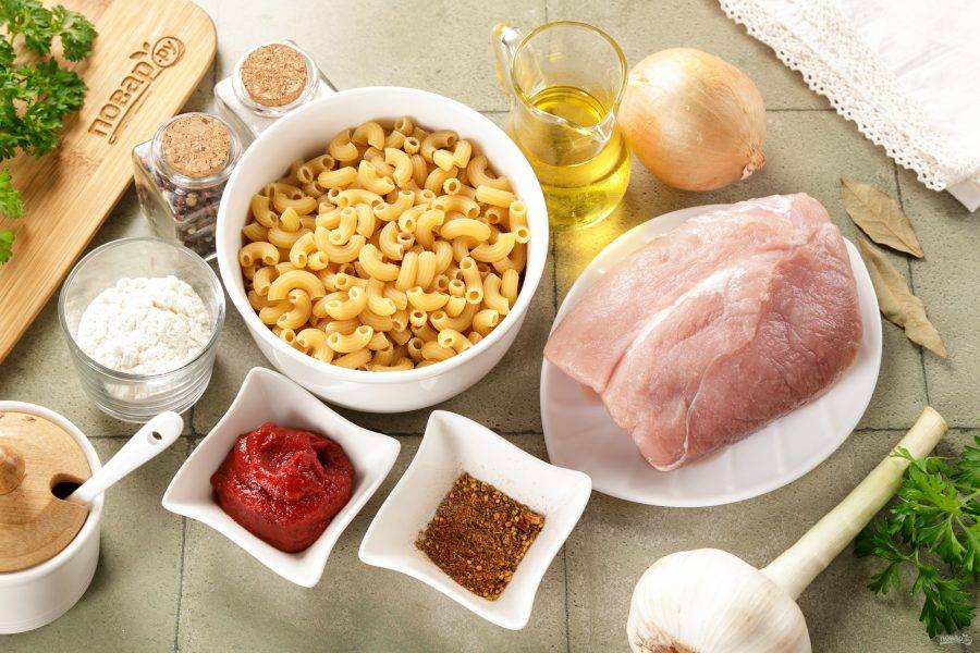 Подготовьте все ингредиенты по списку. Специи берите на свой вкус. Макароны желательно использовать из твёрдых сортов пшеницы.