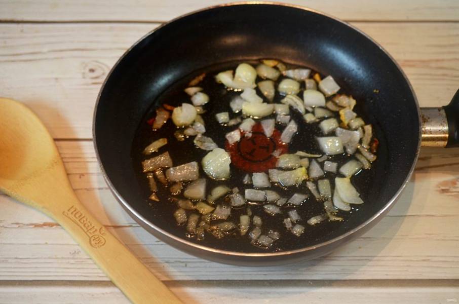 2. Лук обжарьте до прозрачности с небольшим количеством масла.