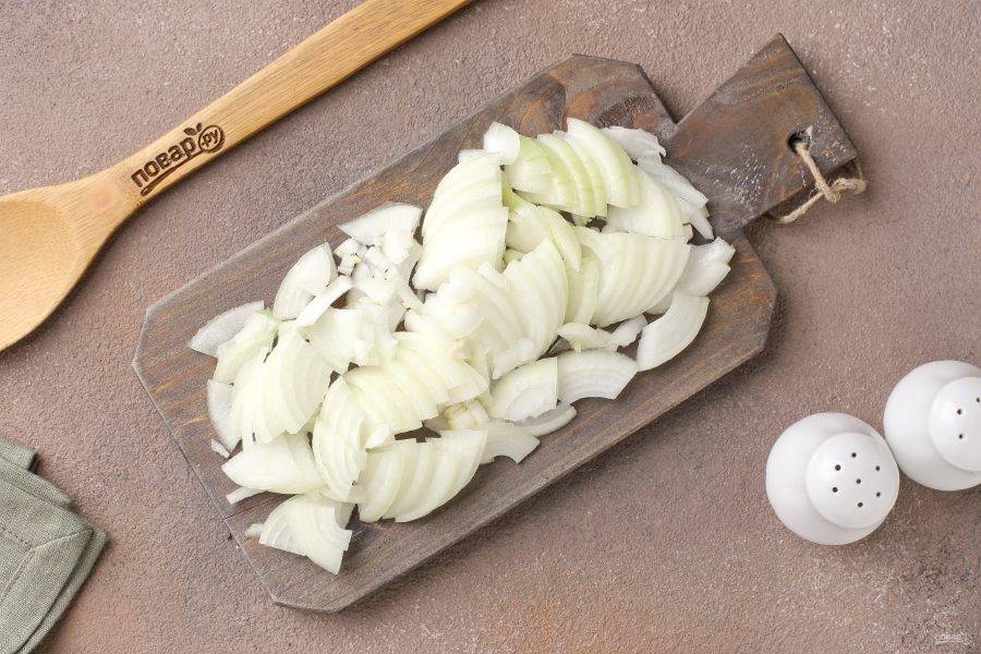 Лук нарежьте перьями или кубиками.