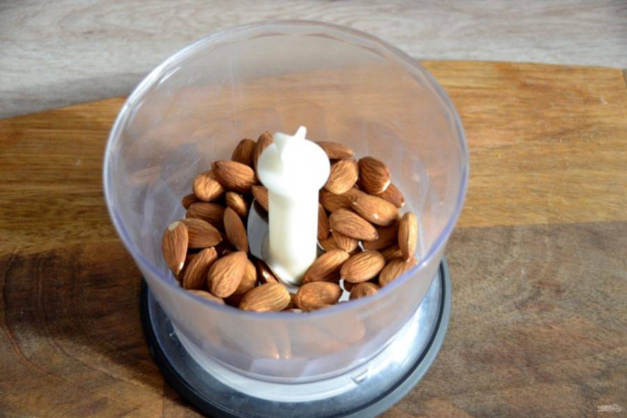 Измельчите миндаль достаточно мелко, насколько это возможно.