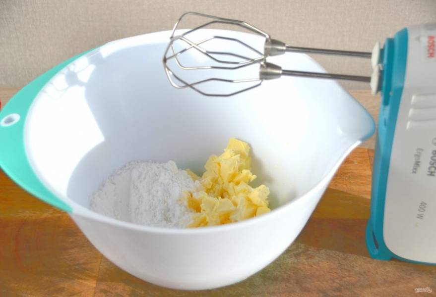 Взбейте вместе сахарную пудру и мягкое сливочное масло.