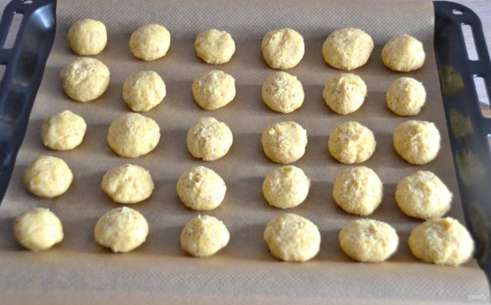 Скатайте из теста шарики размером с грецкий орех, выложите на лист для выпечки.