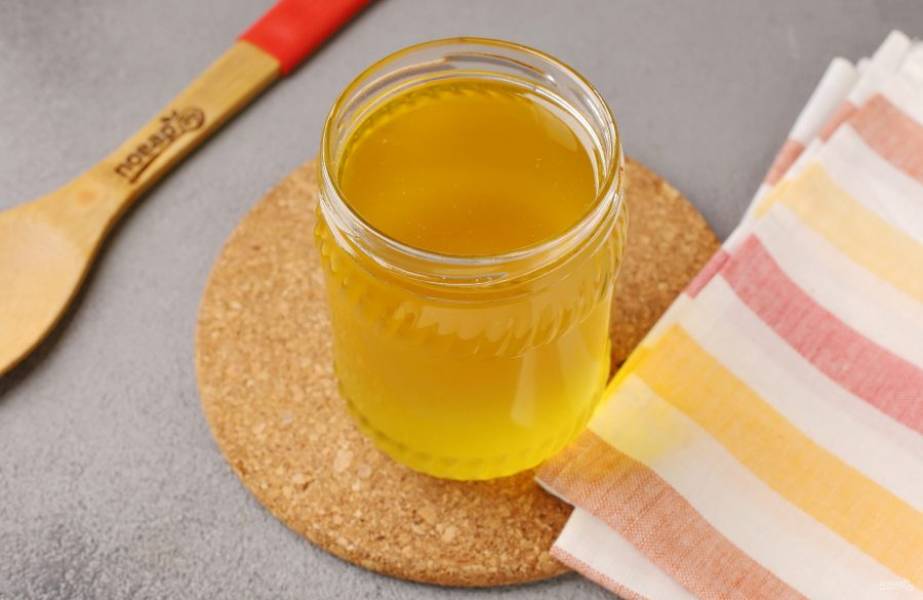 Практически весь жир слейте в банку, гусиный жир — это кладезь различных микроэлементов и ненасыщенных жирных кислот. Его можно в дальнейшем использовать для приготовления любых всевозможных блюд, и даже, как домашнее средство от ожогов. Дайте жиру остыть и уберите в холодильник на хранение.