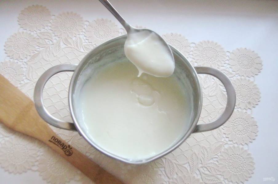400 мл. молока налейте в кастрюлю с толстым дном. Добавьте сахар по вкусу.