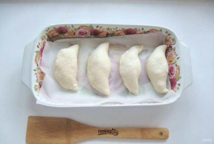 Выложите гвезели в форму для выпечки. Дайте постоять в тепле 30 минут. За это время пирожки немного увеличатся в размере.