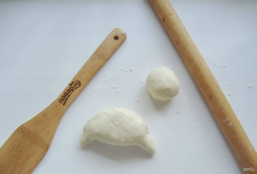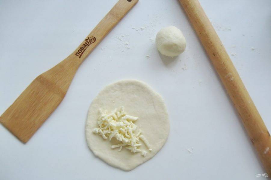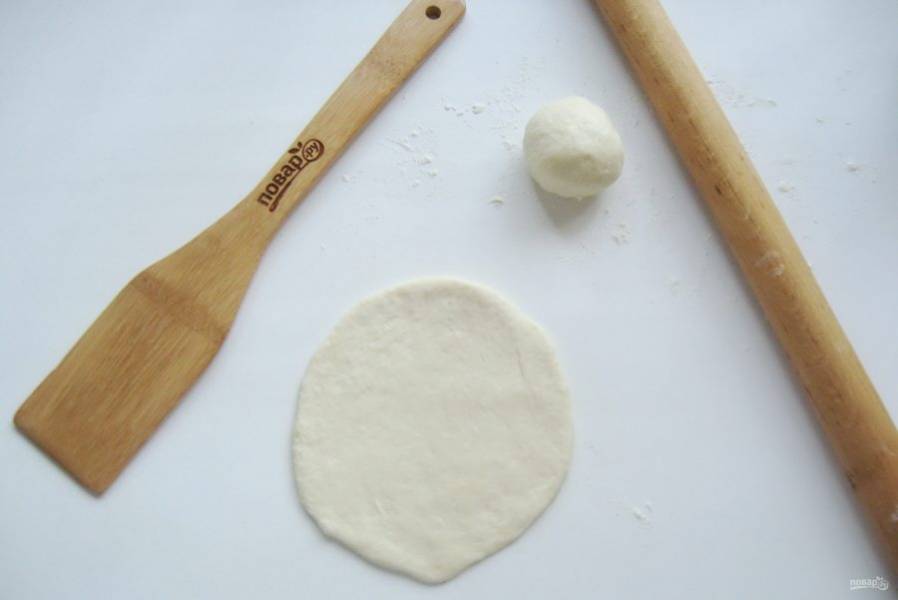 Тесто разделите на кусочки весом 50-60 грамм. Каждый кусочек скатайте в шарик. Каждый шарик раскатайте в круг.