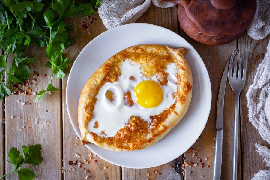 Готовые хачапури по-аджарски сразу же подавайте к столу. Приятного аппетита!