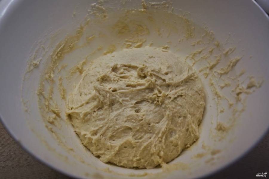 Влейте кефир постепенно, добавьте соль и сахар. Замесите тесто. Оно должно быть мягким и эластичным.