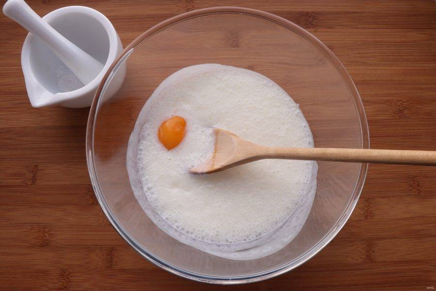 Добавьте одно яйцо и соль.