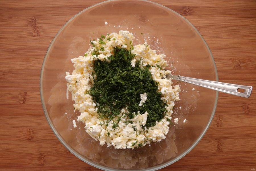 Добавьте нарезанный укроп и снова перемешайте.