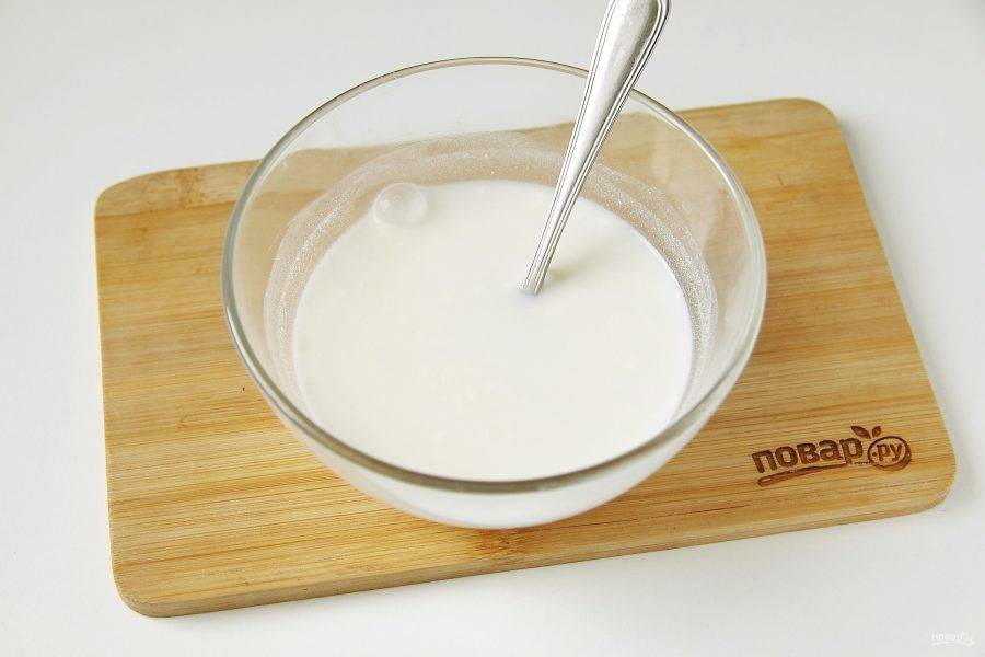 В горячую воду добавьте сметану и соль. Перемешайте.