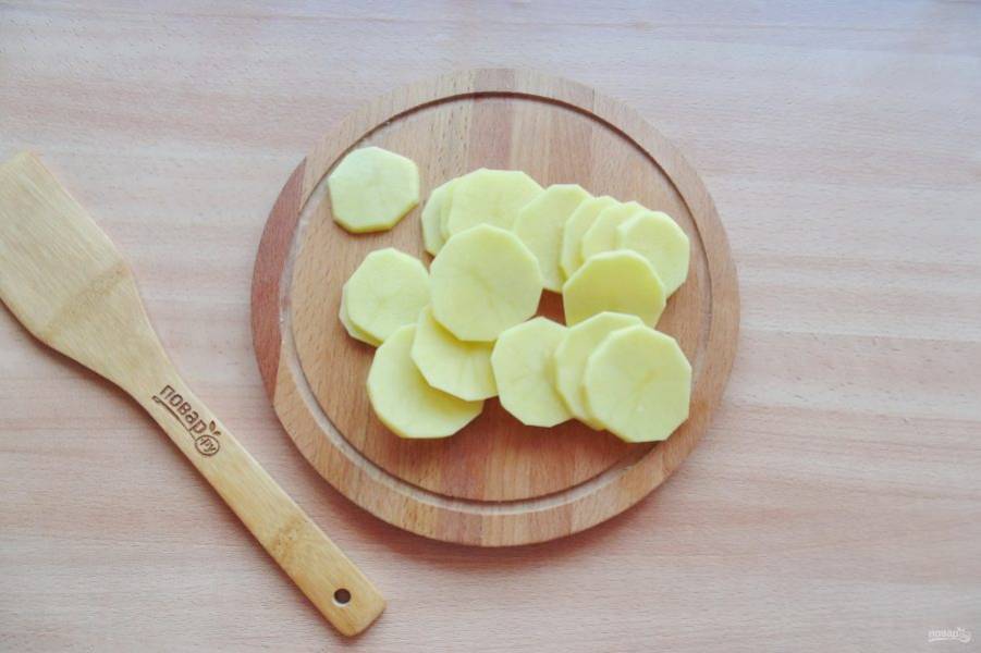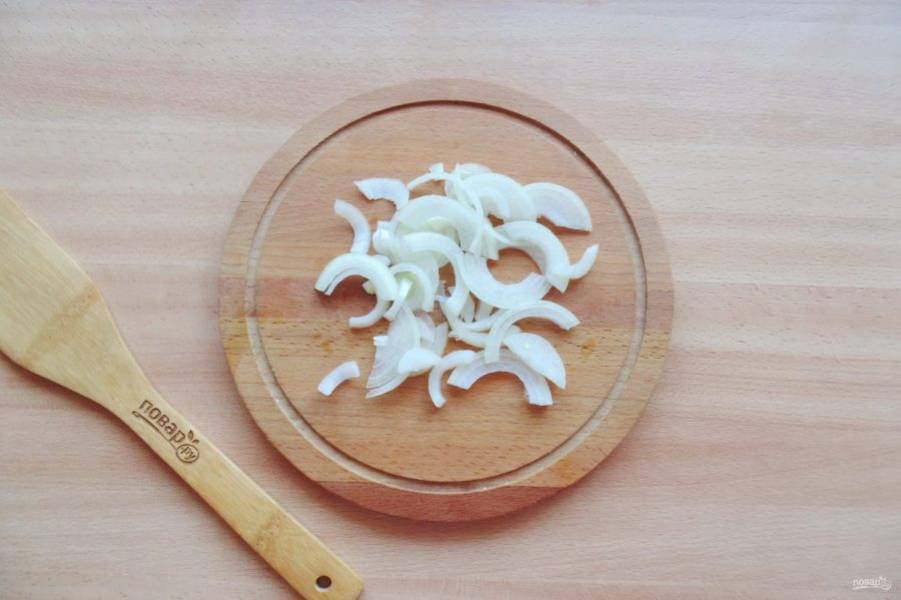 Репчатый лук очистите, помойте и нарежьте полукольцами.