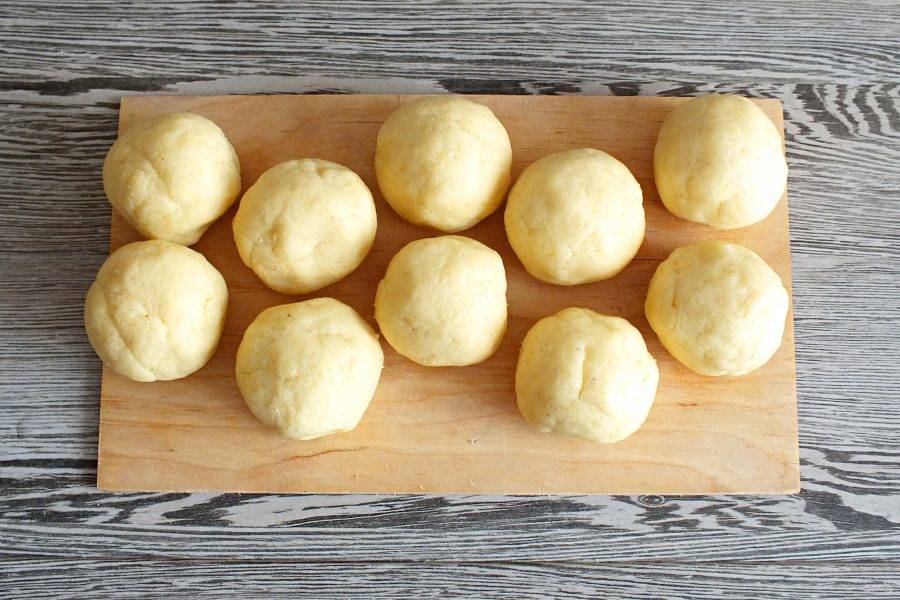 По истечении времени разделите тесто на 10 частей. Скатайте шарики.