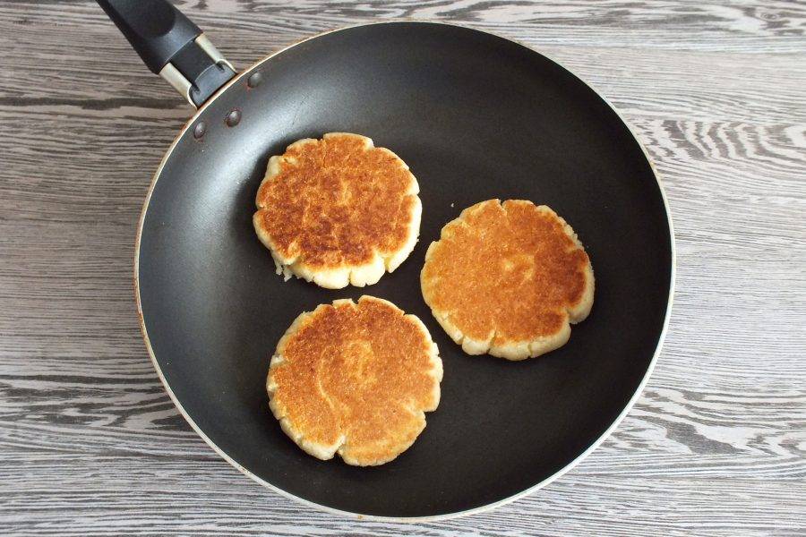 На медленном огне обжарьте оладьи. С каждой стороны по 5 минут.