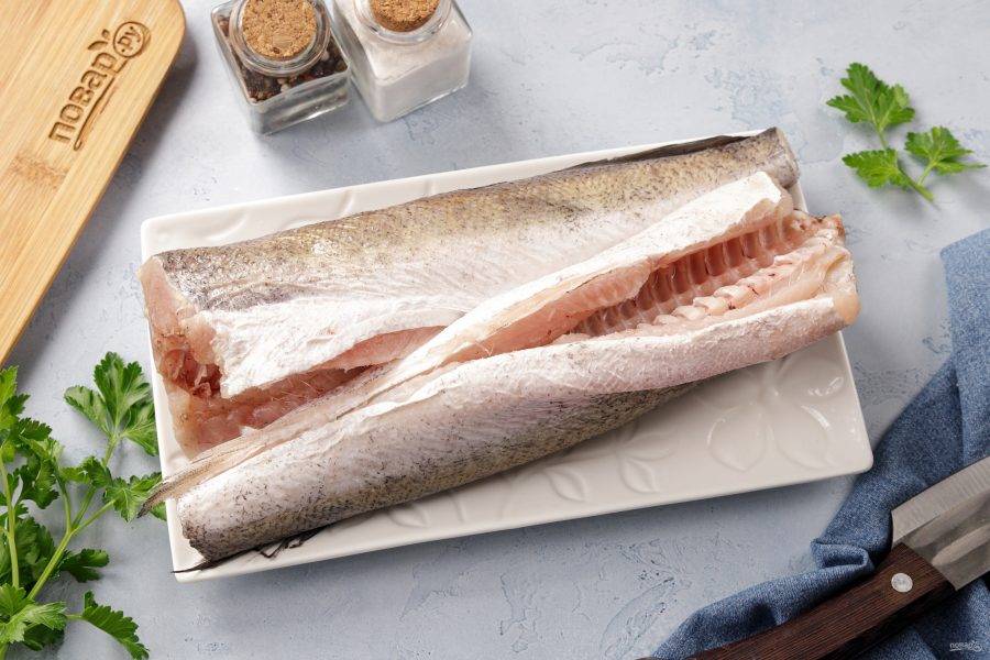 Подготовьте все ингредиенты по списку. Если рыба была заморожена, предварительно разморозьте её на нижней полке холодильника.