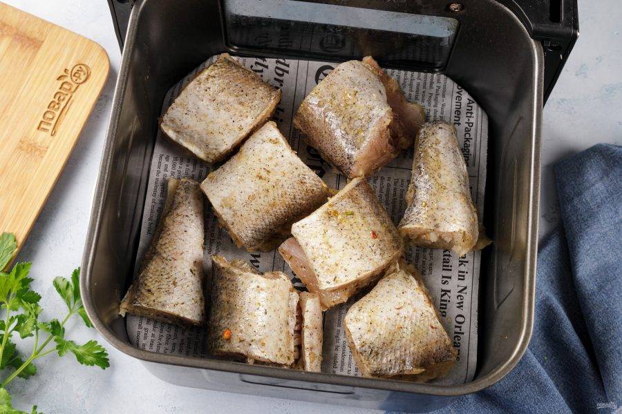 Выложите стейки на решётку аэрогриля. Решётку можно застелить пергаментом или фольгой.