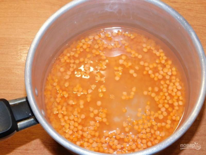 Чечевицу залейте водой, доведите до кипения и отварите в течение 10-15 минут.