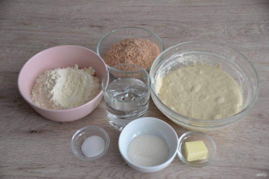Подготовьте ингредиенты, включая опару, которую следует приготовить заранее, за 10-12 часов до замеса теста (лучше с вечера).
