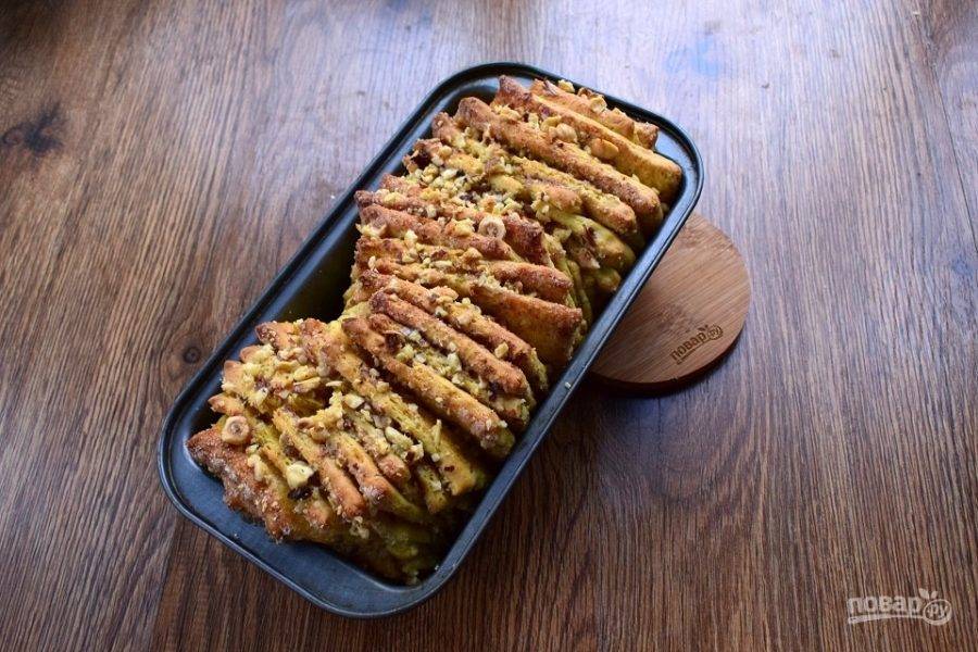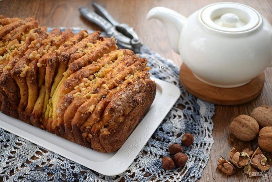 Ароматный, эффектный и очень вкусный итальянский хлеб в виде "гармошки" можно приготовить с различной начинкой между слоями. На этот раз я взяла орешки грецкие, фундук и корицу. Bon appetit!