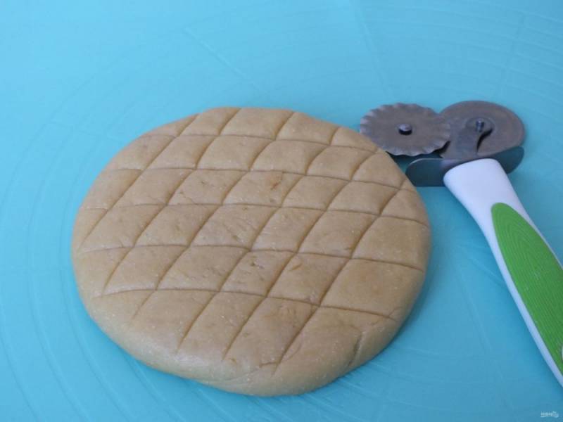 Сформируйте лепешку и сделайте орнамент по желанию.