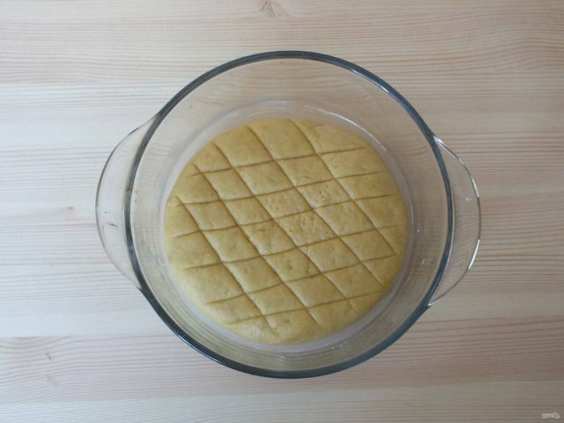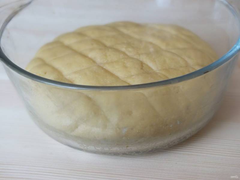 Готовое тесто переложите на рабочую поверхность. Включите духовку на 180 градусов.