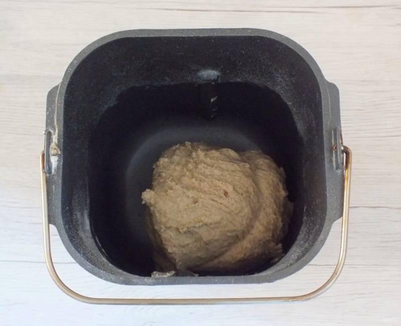 Не закрывая крышку хлебопечки, наблюдайте за замесом. Тесто должно получится липким, но не мажущим. Как только оно собралось в комок, закройте крышку хлебопечки и дождитесь окончания процесса.