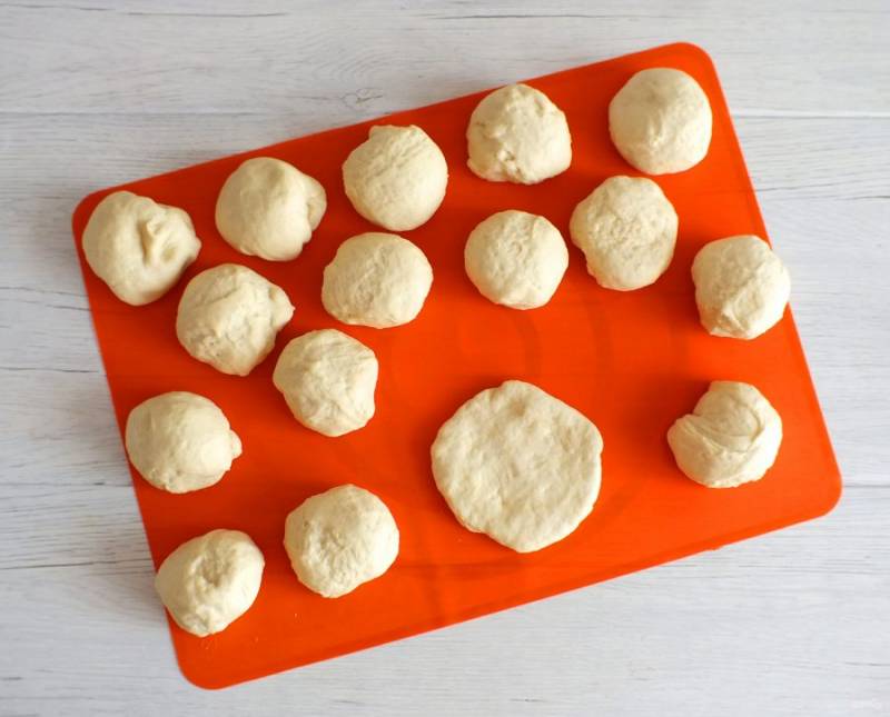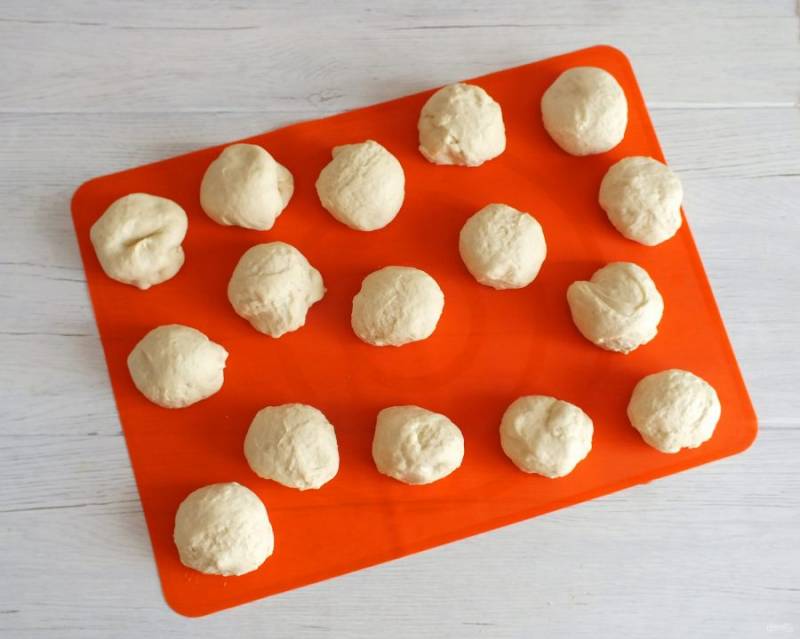 Разделите тесто на 16-18 кусочков.