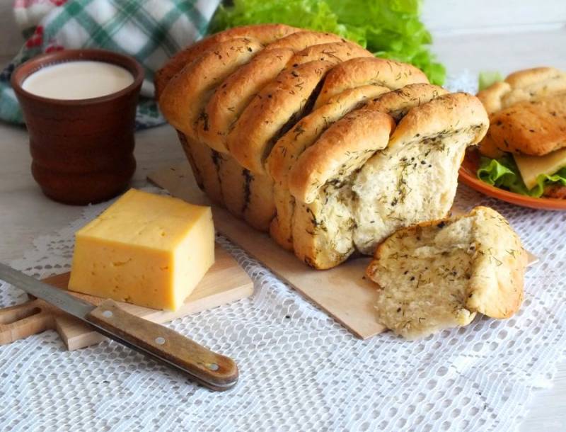 Любите экспериментировать с рецептами хлеба? Тогда обратите внимание на хлеб на топленом молоке. Я его приготовила на манер сербской погачицы. Это хлеб-гармошка с пряными травами и сливочным маслом.