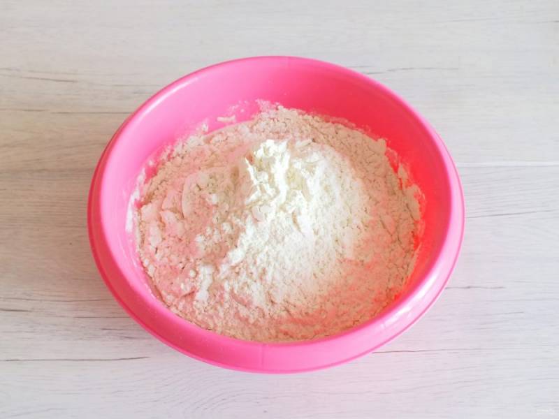 Добавьте просеянную муку.