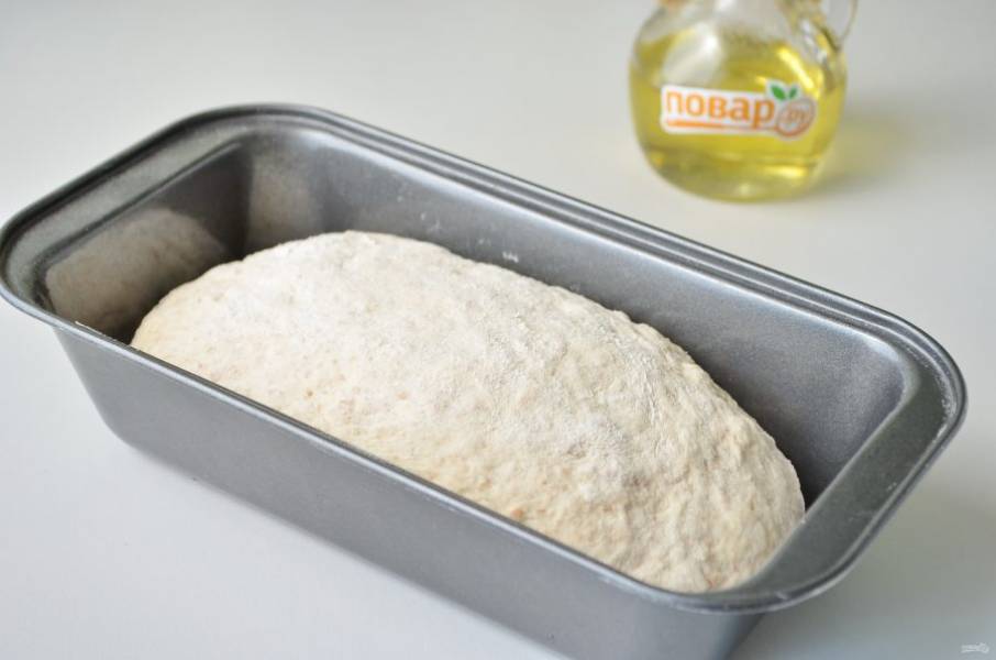 6. Разделите тесто на две части, положите в смазанные формы и оставьте в тепле на 30-40 минут, чтобы тесто подошло. Не забудьте накрыть полотенцем, чтобы тесто не сохло.