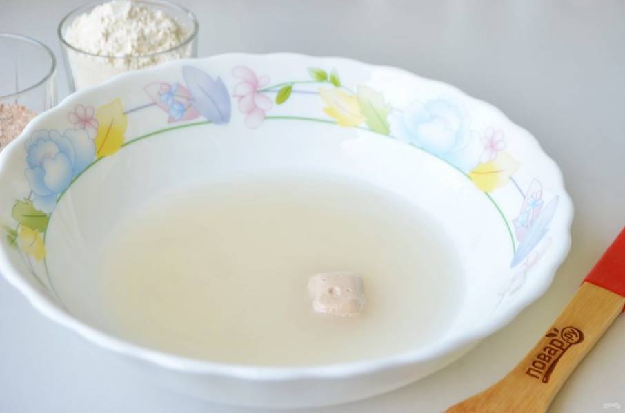 2. В теплой воде растворите соль и дрожжи.