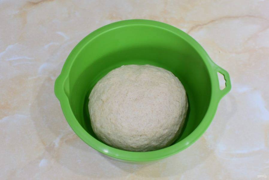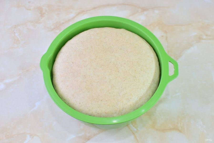 Выложите тесто в миску, накройте полотенцем и поставьте в теплое место на 1-1,5 часа.
