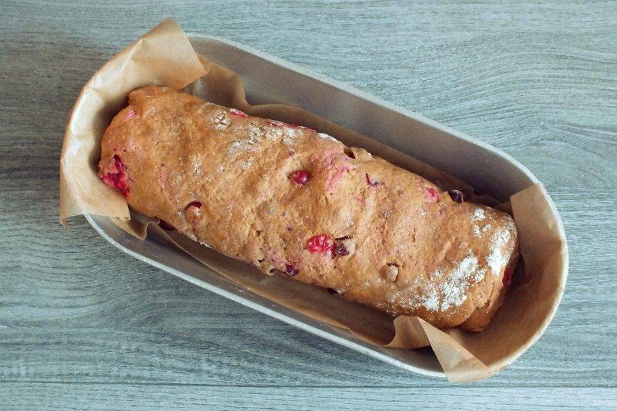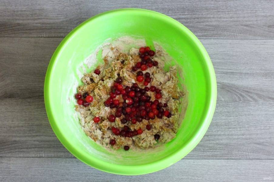 Добавьте клюкву и аккуратно замесите тесто. Ягоды могут лопаться, но это не повлияет на качество теста и хлеба в дальнейшем.