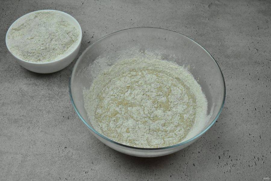 Всыпьте 195 граммов ржаной муки и соль. Вы можете смиксовать разные виды ржаной муки цельнозерновую обойную и обдирную или добавить 25% пшеничной муки от общего количества.