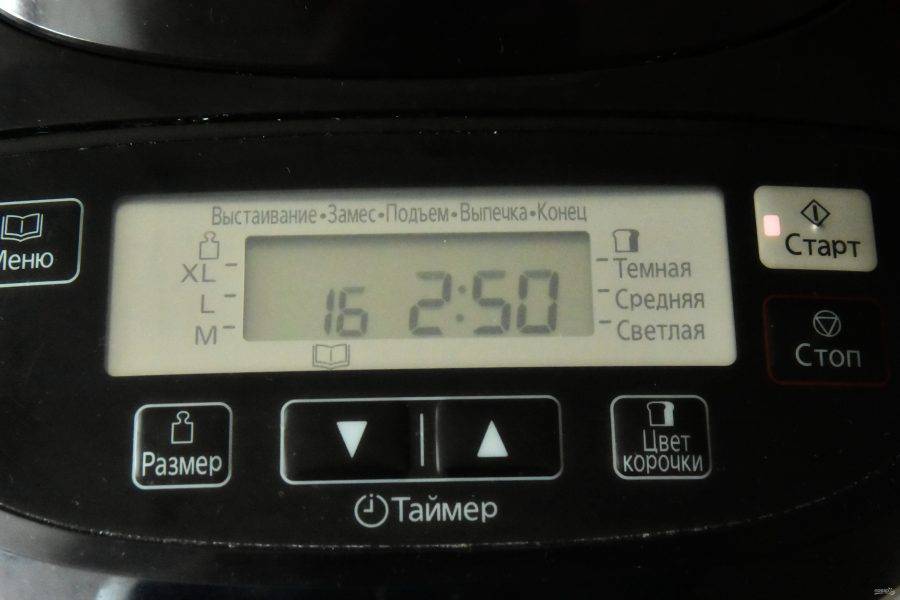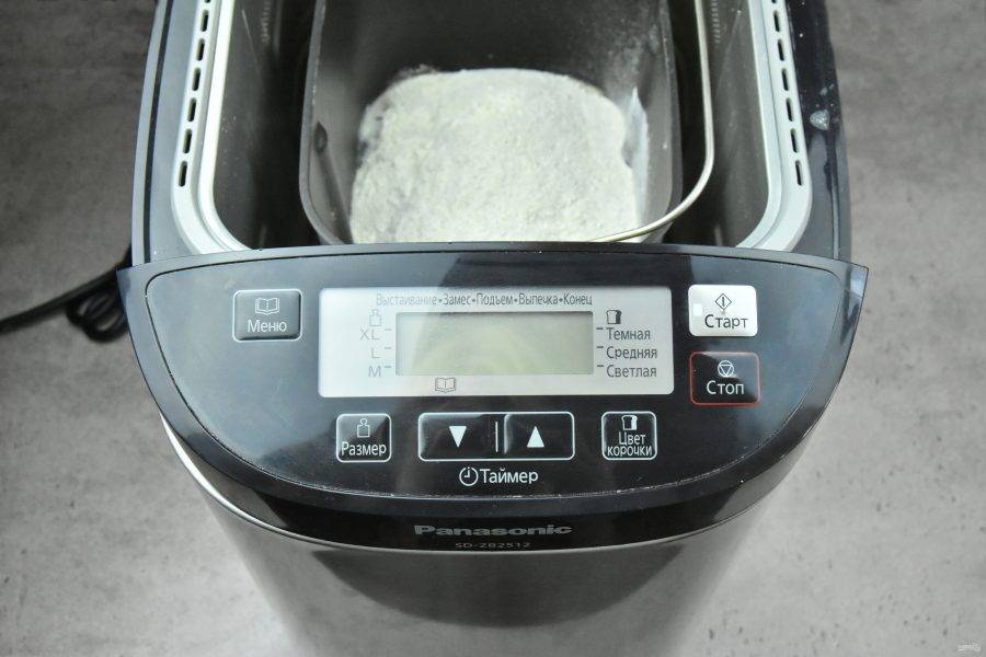 Если устройство не предусматривает программы приготовления хлеба на закваске, готовить хлеб удобно в 2 этапа на 2 программах. Сначала выберите подходящую программу замеса теста. В хлебопечи Panasonic это основная программа №16 для малодрожжевого хлеба.