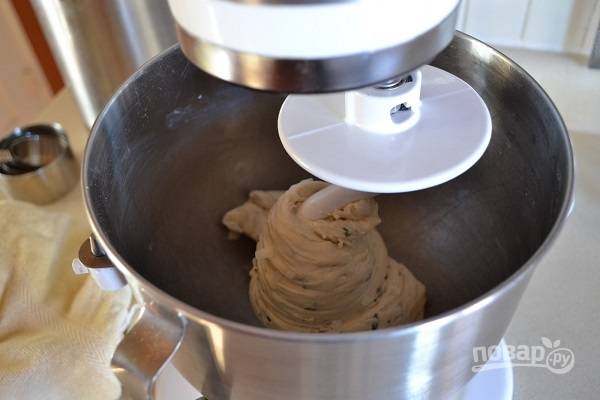 3. Добавьте в тесто, еще раз перемешайте. Накройте чистым полотенцем и оставьте в тепле часика на 1.5.